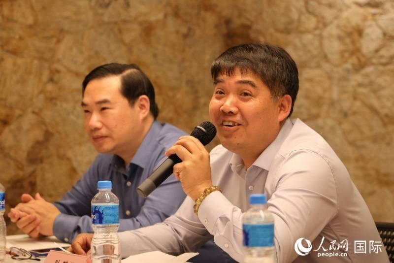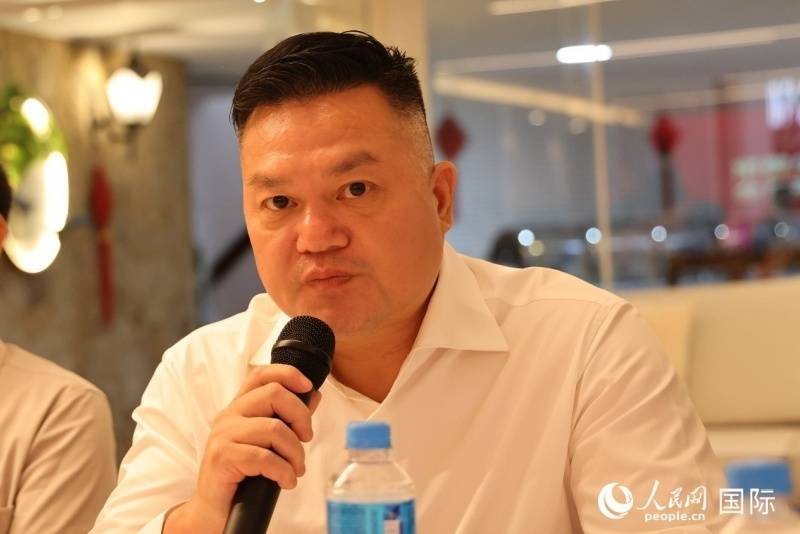 米纳斯州中国和平统一促进会会长叶新锋(右一)在领区台湾同胞新年茶话会上发言。人民网记者 陈海琪摄